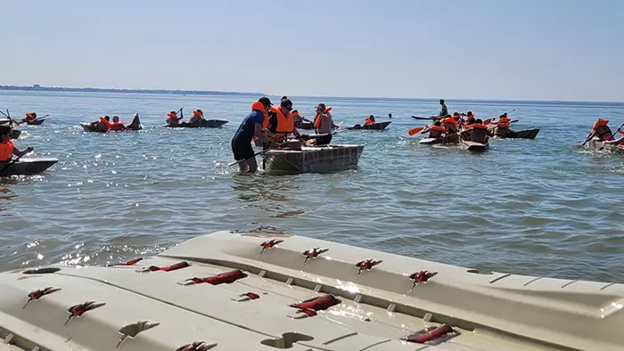 - Un team building sportif et créatif, où nos équipes se sont affrontées en construisant des radeaux façon « Koh-Lanta » !